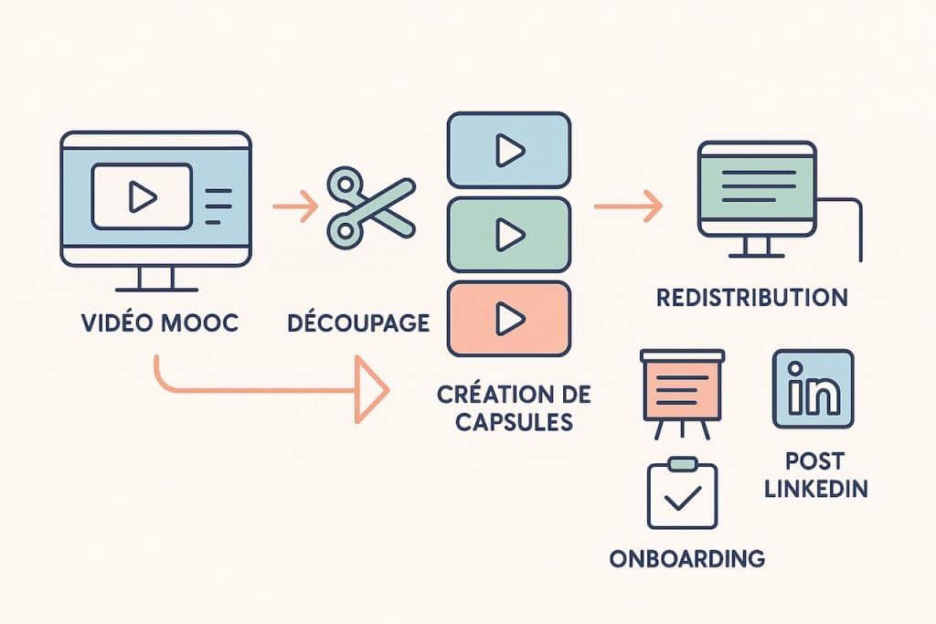Créer un MOOC demande du temps, de l’énergie, des compétences techniques… et souvent un petit budget. Chaque séquence vidéo, chaque infographie, chaque script représente des heures de travail. Alors, pourquoi tout jeter ou laisser prendre la poussière numérique à ce contenu, simplement parce que le format d’origine n’est plus à la mode ?